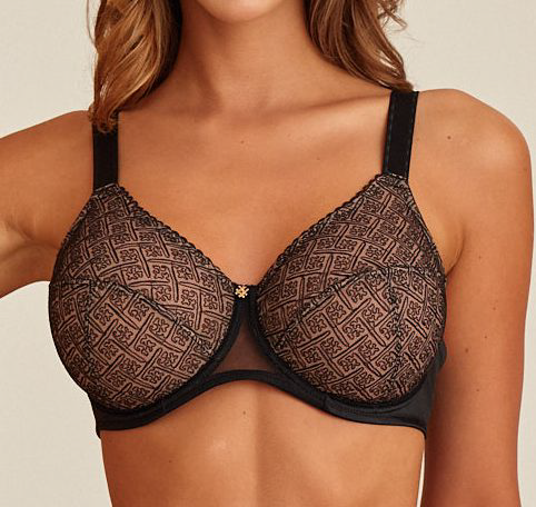 мягкая чашка с Т-образным членением, нижняя деталь чашки на подкладке из эластичной сетки, широкие плотные лямки маечного типа. Пояс из плотной микрофибры с застежкой на 3 крючка и 3 уровня.