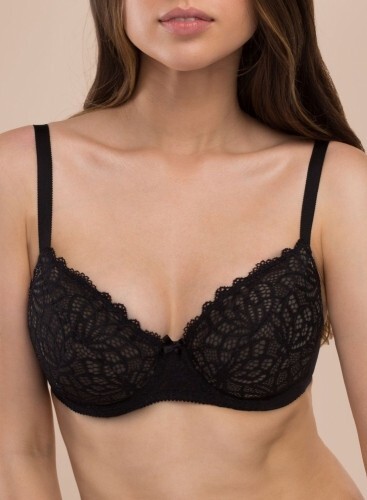 Бюстгальтер с формованной чашкой выполнен из эластичного кружева и эластичного полотна. Чашки сшивные на дубляже с хлопком. Бретели несъемные. Отделка - бантик. Удобный, красивый и практичный бюстгальтер для повседневной носки.