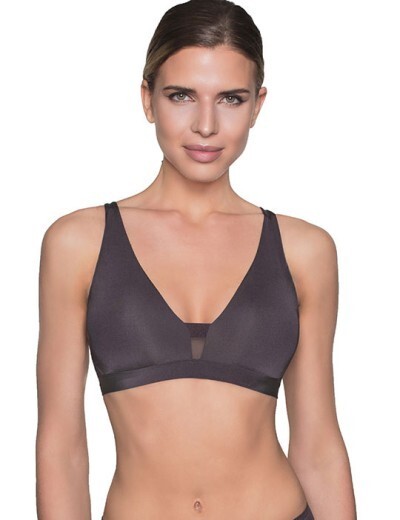 Бюстгальтер с чашками «триангул» из классической коллекции EXTRAORDINARY, без косточек. Чашка мягкая, выполнена в два слоя из шелковистого эластичного полотна с микрофиброй, плавно переходит в широкие бретели, регулируемые по длине сзади; со съемным формованным вкладышем (без пуш-ап). Под грудью широкая плоская резинка, обтянутая тоненькой микрофиброй, для поддержки небольшой груди. Пояс выполнен из двойного слоя микрофибры, укреплен вертикальными упругими пластинами.