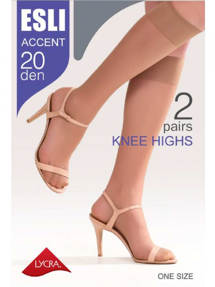 Тонкие эластичные гольфы ACCENT 20 ден с Lycra с комфортной широкой резинкой и невидимыми усиленными мысками.
