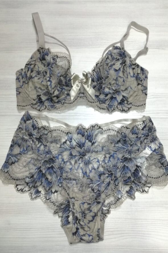 Комплект женского белья из коллекции Glamour от европейского производителя Leilieve. В комплекте: бюстгальтер с мягкой чашкой (без вкладышей), на косточках, и трусики-шорты с высокой линией талии. Лопатки и поясница красиво подчеркиваются узкими бретелями. Выполнен из кружева.