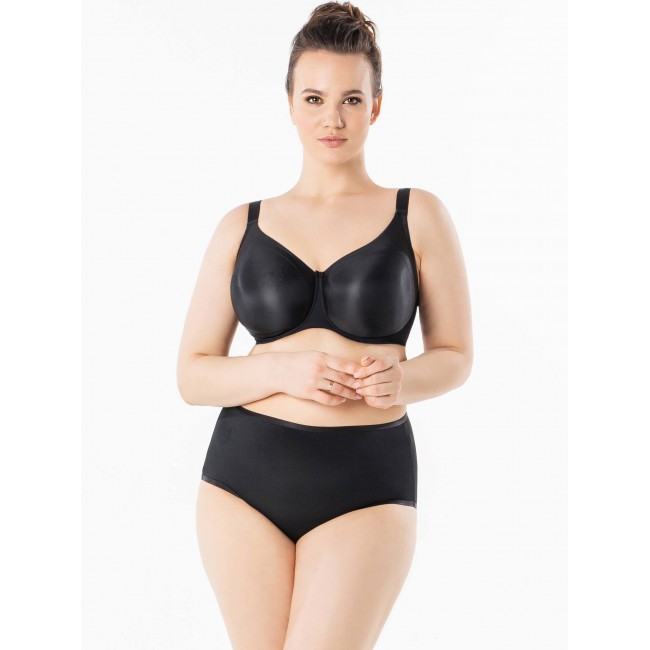 Трусы классические с высокой линией талии, линейка размеров "big-size". Выполнены из эластичного трикотажного полотна. Внутренняя часть ластовицы трусов изготовлена из хлопкового полотна. Верхний и нижний срезы трусов обработаны эластичной отделочной лентой с атласным блеском на лицевой стороне.