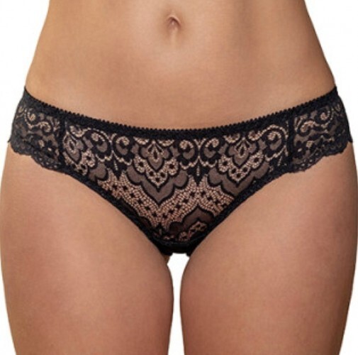 Трусы-бразилиана с заниженной линией талии. Выполнены из эластичного кружева. Срезы по краю обработаны на плоскошовной машине. Такие трусики имеют V-образный крой, закрывающий сзади ягодицы лишь наполовину и отлично их подчеркивают.