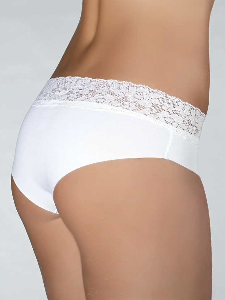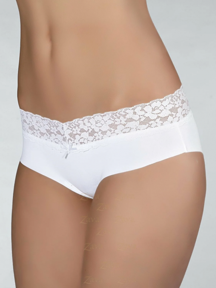 Трусы-слип из хлопка с эластаном, на поясе широкая кружевная резинка с фронтальной аппликацией в виде банта, заниженная талия, лазерная обработка края.