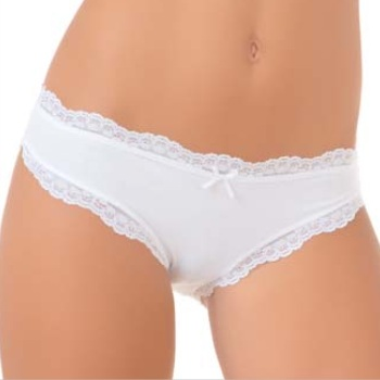 Выполненная наполовину из хлопка модель трусиков, очень мягкая на ощупь и приятная к телу. По краям спереди и на поясе пришита ажурная кружевная оборочка. Спереди пришит маленький атласный бантик. Простая модель трусиков. очень удобная и комфортная!